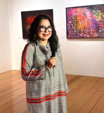 Por su parte, la artista explicó que las obras tienen una coherencia entre sí, con colores cromáticos y las texturas una sobrepuesta a la otra, evocando la migración.