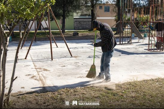 H. Matamoros, Tamaulipas.-Con la intervención de la Cuadrilla Renace, los espacios de convivencia en la colonia Infonavit Satélite recuperan su funcionalidad, a través de labores de limpieza y poda que favorecen un entorno más agradable y seguro para las familias de Matamoros.