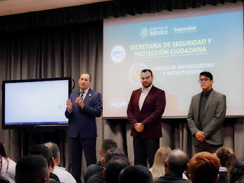 La capacitación es impartida por el oficial Miguel Ángel Alarcón Hernández, adscrito a la Unidad de Antisecuestro y Antiextorsión de la Secretaría de Seguridad y Protección Ciudadana (SSPC) y el agente investigador Carlos Roberto Medina Palma, quienes compartieron conocimientos especializados para fortalecer la capacidad operativa identificando las diversas modalidades de extorsión y de respuesta ante situaciones de crisis generadas por el delito de extorsión.
