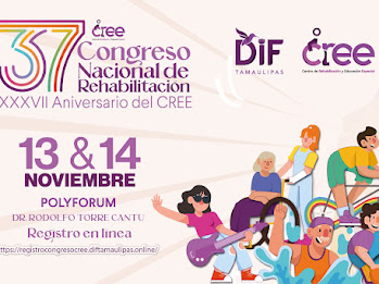 Ciudad Victoria, Tamaulipas. En el marco del trigésimo séptimo aniversario del Centro de Rehabilitación y Educación Especial (CREE), el Sistema DIF Tamaulipas que preside la doctora María de Villarreal invita a profesionales del área médica y a la población en general a participar en el XXXVII Congreso Nacional de Rehabilitación, que se llevará a cabo los días 13 y 14 de noviembre en el Polyforum de la capital del estado.