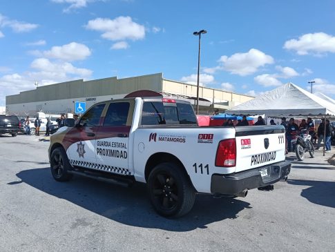 H. Matamoros, Tamaulipas.- Elementos de la Policía de Proximidad reforzaron la vigilancia en la empresa “Cardone”, ubicada en la zona industrial de Matamoros, como parte de las acciones permanentes de prevención del delito que se realizan en el municipio para fortalecer la seguridad en los centros de trabajo.