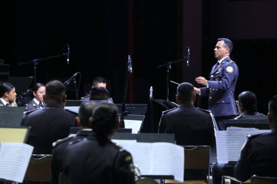 Más tarde, el teatro Amalia G. de Castillo Ledón se vistió de gala con la Orquesta Sinfónica de Alientos, bajo la dirección del maestro Remigio Reyes González, que ofreció el concierto “Un paseo por México”, el cual incluyó música mexicana especialmente adaptada para instrumentos de aliento, evocando un espíritu festivo y la identidad de nuestras raíces.