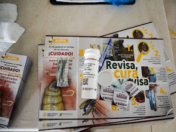 El titular de la Secretaría de Desarrollo Rural, Antonio Varela Flores, informó que además de las jornadas de capacitación, se realiza la entrega de material informativo, kits para toma de muestras y cicatrizante gratuito, con el objetivo de que las y los productores cuenten con las herramientas necesarias para actuar de manera inmediata ante una posible presencia del gusano barrenador.