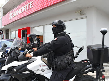 Ciudad Victoria, Tamaulipas.- Con el objetivo de salvaguardar la integridad y patrimonio de las y los tamaulipecos, personal de la Guardia Estatal mantiene la presencia y vigilancia en bancos, cajeros, y otras instituciones financieras ante el pago de aguinaldos y otras prestaciones.