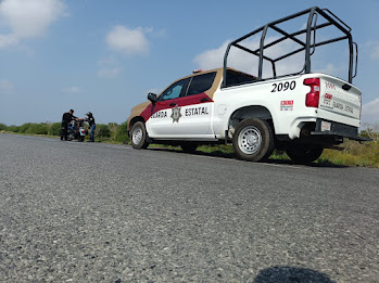 Jiménez, Tamaulipas.– Personal de la Guardia Estatal desplegó un operativo de seguridad para resguardar el paso de una caravana internacional de motociclistas que ingresó al estado con destino a El Salvador.