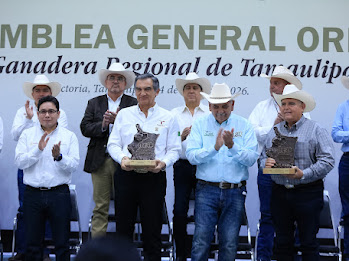 Durante la Asamblea, a la que se dieron cita 54 asociaciones ganaderas locales, así como presidentas y presidentes municipales de Nuevo Laredo, Aldama, Casas, Güémez y González, además de legisladoras y legisladores, funcionarios estatales y todo el Consejo Directivo de la UGRT, el gobernador entregó el reconocimiento al Mérito Ganadero a Eulalio Guerra Guerra, de Reynosa; María Elvira Pérez Pérez, de Abasolo, y a don Héctor Osvaldo Barberena Aguirre, de Nuevo Laredo.