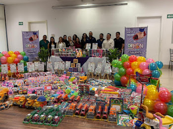 Desde pelotas, muñecas, cochecitos, juegos de destreza y triciclos, entre otros productos que no fomentan la violencia, fueron entregados a la noble institución que organiza la colecta DIFtón “Juguetes por Montón”.