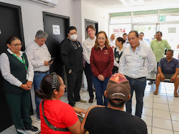 En el recorrido, acompañaron a la secretaria de Salud, la presidenta Municipal de Soto la Marina, Glynnis Jiménez Vázquez; el coordinador estatal de IMSS Bienestar, Marggid Antonio Rodríguez Avendaño; el director de Servicios Médicos, Calidad y Enseñanza, Carlos González Castro; el director de Políticas de Salud y Bienestar Poblacional, Gabriel de la Garza Garza y el titular de la COEPRIS, Mario Rebolledo Urcádiz.