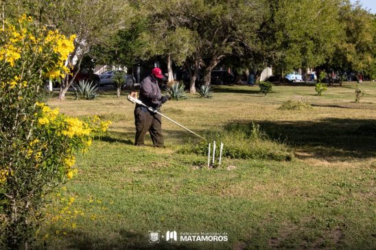 H. Matamoros, Tamaulipas.- Las cuadrillas de Espacios Públicos siguen avanzando en las tareas de mantenimiento y limpieza en distintas zonas de la ciudad, bajo la instrucción del presidente municipal Beto Granados, quien reafirma su compromiso con el bienestar de la ciudadanía y la mejora continua de nuestro entorno urbano.