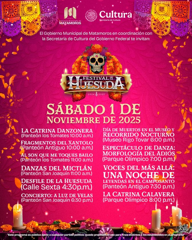 Cd. Valle Hermoso Tamaulipas.- En el marco de la celebración del Día de Muertos, el Gobierno Municipal que encabeza el alcalde Dr. Alberto Alanís Villarreal, en coordinación con el Sistema DIF Municipal y la Dirección de Cultura, llevó a cabo con gran éxito el tradicional Desfile de Catrinas y Catrines, así como la emotiva danza de Xantolo.